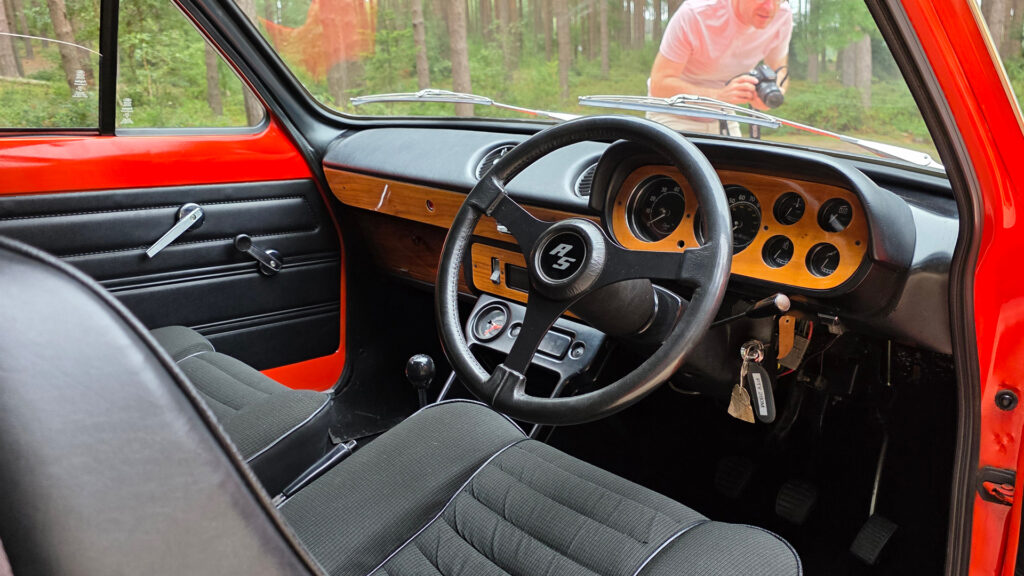 Simplicity is the key to the cabin here. All you get is a pair of comfy sporty seats, a very cool three-spoke ‘RS’ badged steering, and all the essential dials you’ll ever need. While there was a slot for a radio, undoubtedly a luxury in 1974, it was missing from this example.